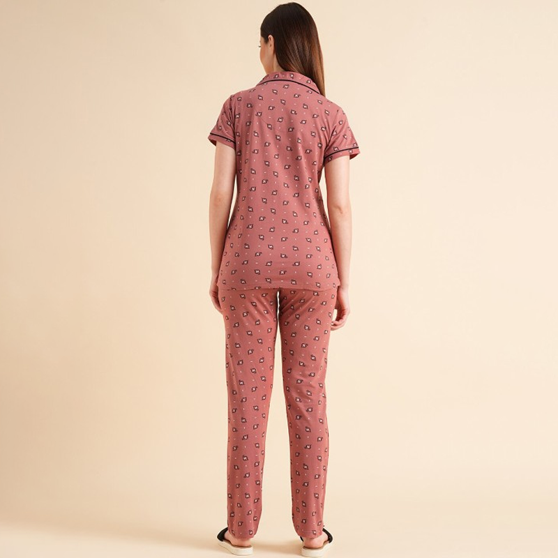 Peach-Coloured & White Floral Printed Pure Cotton Night Suits